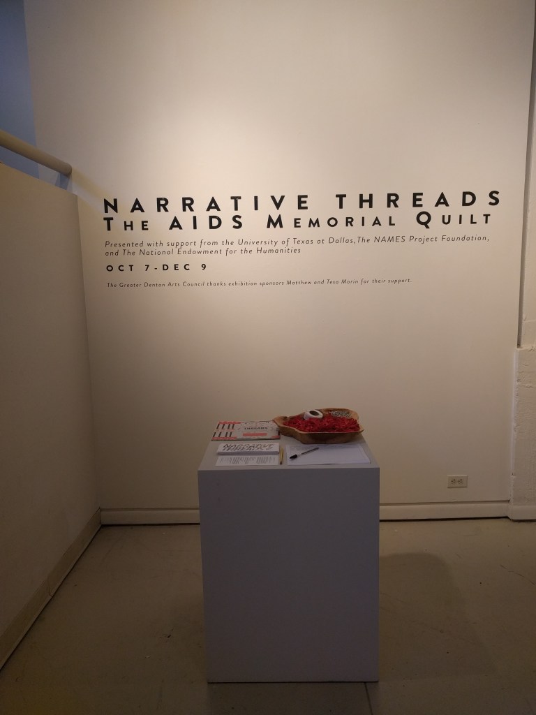 October 2017 – Exhibition “Narrative Threads: The AIDS Memorial Quilt”, at the Greater Denton Arts Council, Denton, TX, USA.