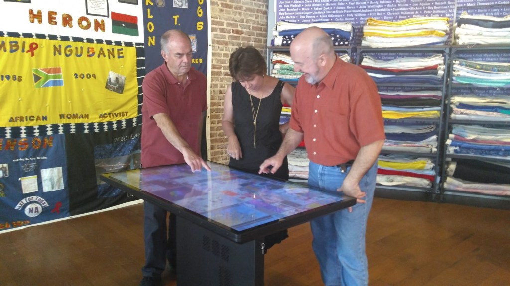 Twice NEH funded project to preserve and augment the AIDS Memorial Quilt through different digital experiences. The touch table is the only place where one can see all blocks of the AIDS Memorial Quilt. Users can also look up a name, and explore different threads of stories connected to the Quilt and HIV/AIDS activism.
